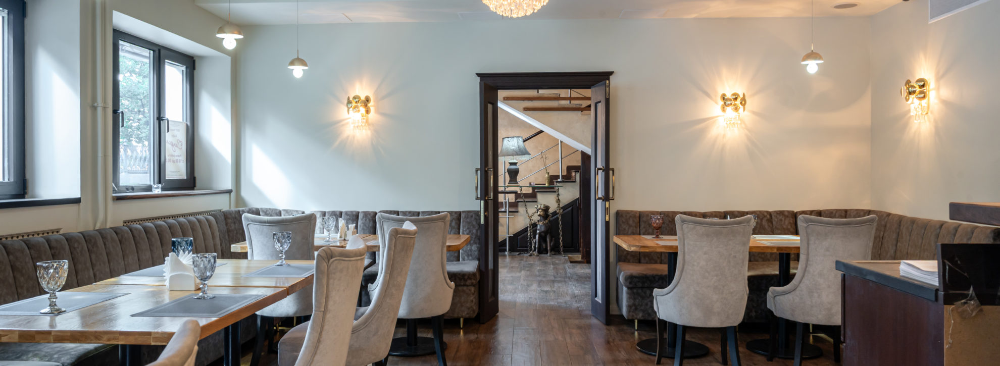 В наш ресторан вы можете пригласить делового партнера, провести важную встречу. На него произведет благоприятное впечатление со вкусом оформленный стильный интерьер, изысканные блюда, отличное обслуживание, хорошие сигары, поданные после ужина.